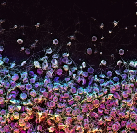 Anti-thrombotic surface coating (upper portion of image)